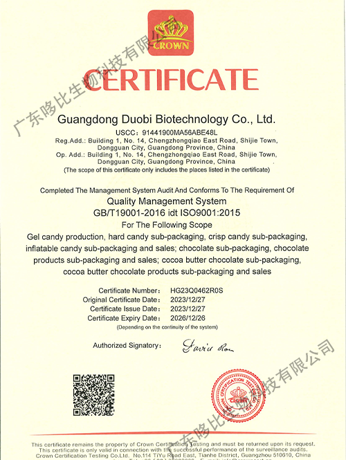 食品饮料行业极具公信力的全球性质量认证奖项;